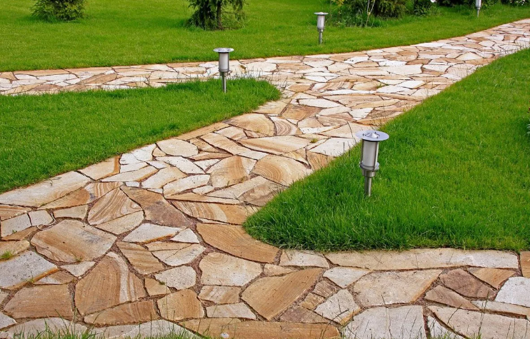 Мощение дорожек природным камнем