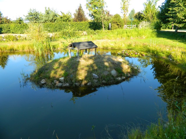 Важное значение будет иметь место. При выборе стоит учитывать некоторые нюансы. Нужно выбрать самый низко расположенный участок в саду. Если он имеет сильный уклон, то стоит провести выравнивание поверхности. Лучше, если вблизи не будет деревьев, так как опадающие листья, засоряя водоём, будут обогащать водную среду, нарушая кислородный обмен и провоцируя излишне активный рост водорослей.